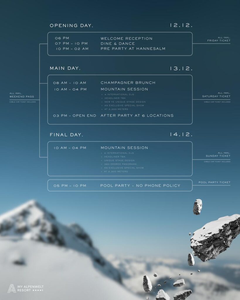 The YE Winteropening 25 kicks off at 6pm at My Alpenwelt Resort – the heart of the weekend.